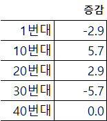 다음은 번호대별 증감 비율입니다.