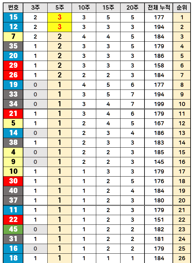 - 15번: 최근 5주간 3회 출현한 핫 넘버