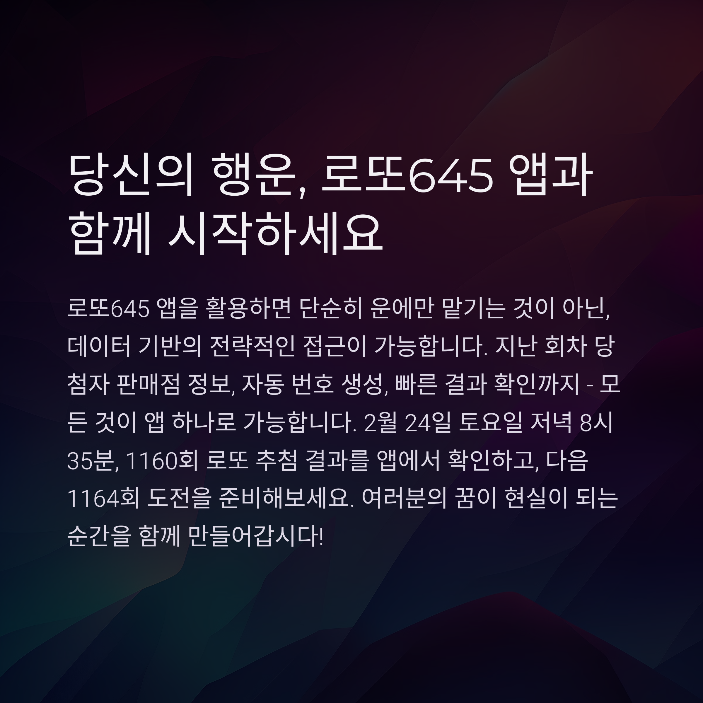 당신의 행운, 로또645 앱과 함께 시작해보세요.
