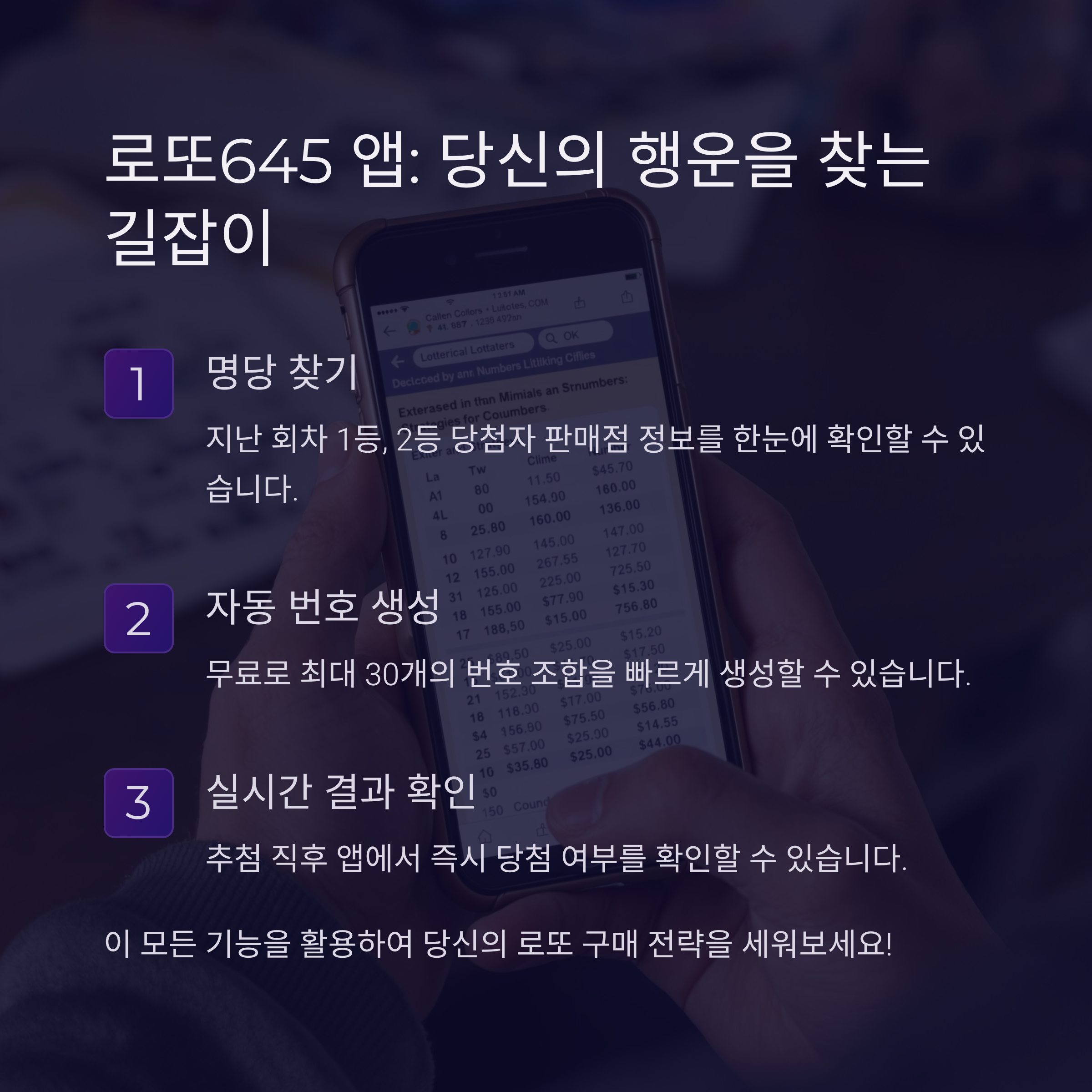 📍 1. 로또645 앱으로 명당 찾기: 지난주 당첨자의 행운을 이어가자