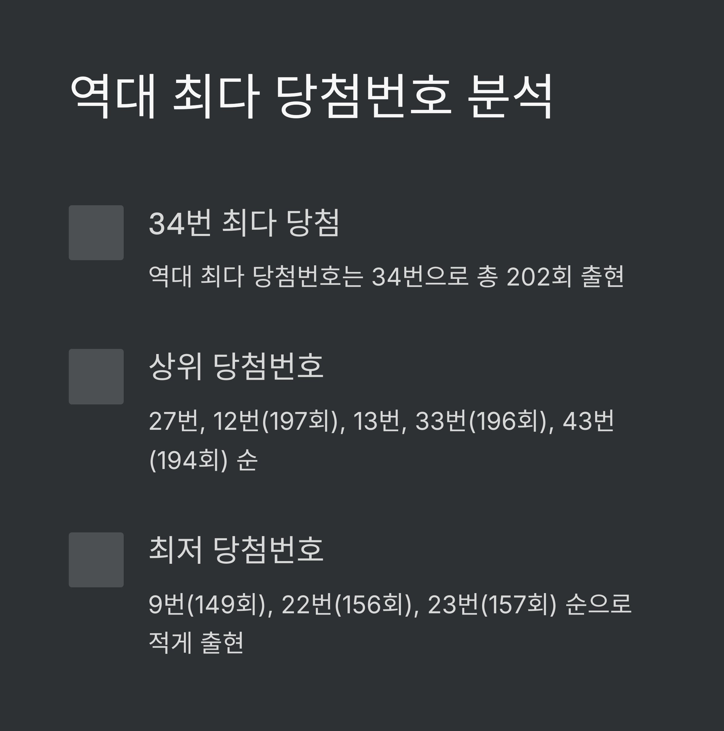 역대 로또 당첨 데이터를 분석해보면 특정 번호가 다른 번호들보다 더 자주 당첨되는 경향이 있습니다.
