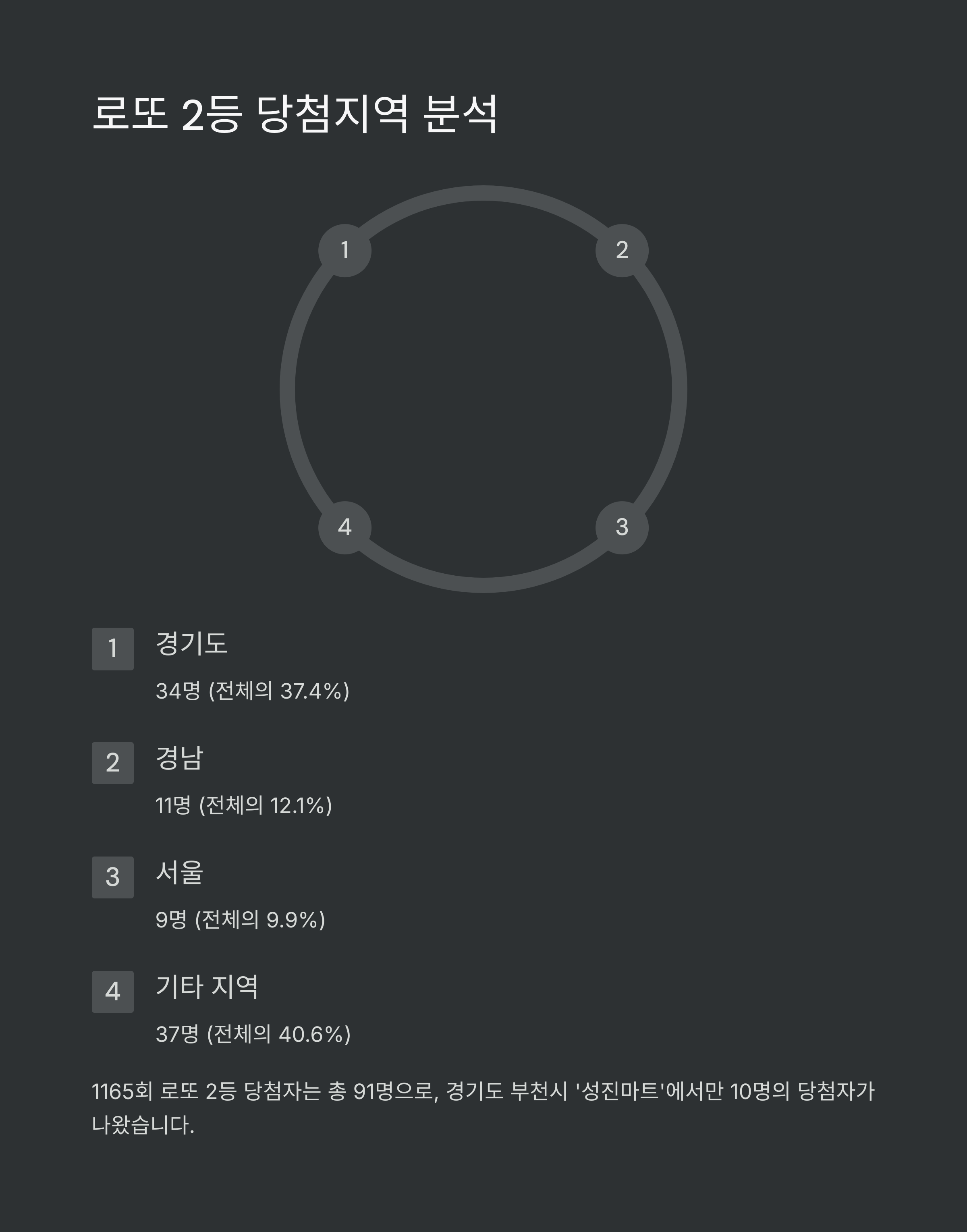 1165회 로또 추첨 결과, 2등 당첨자는 총 91명으로 집계되었습니다.