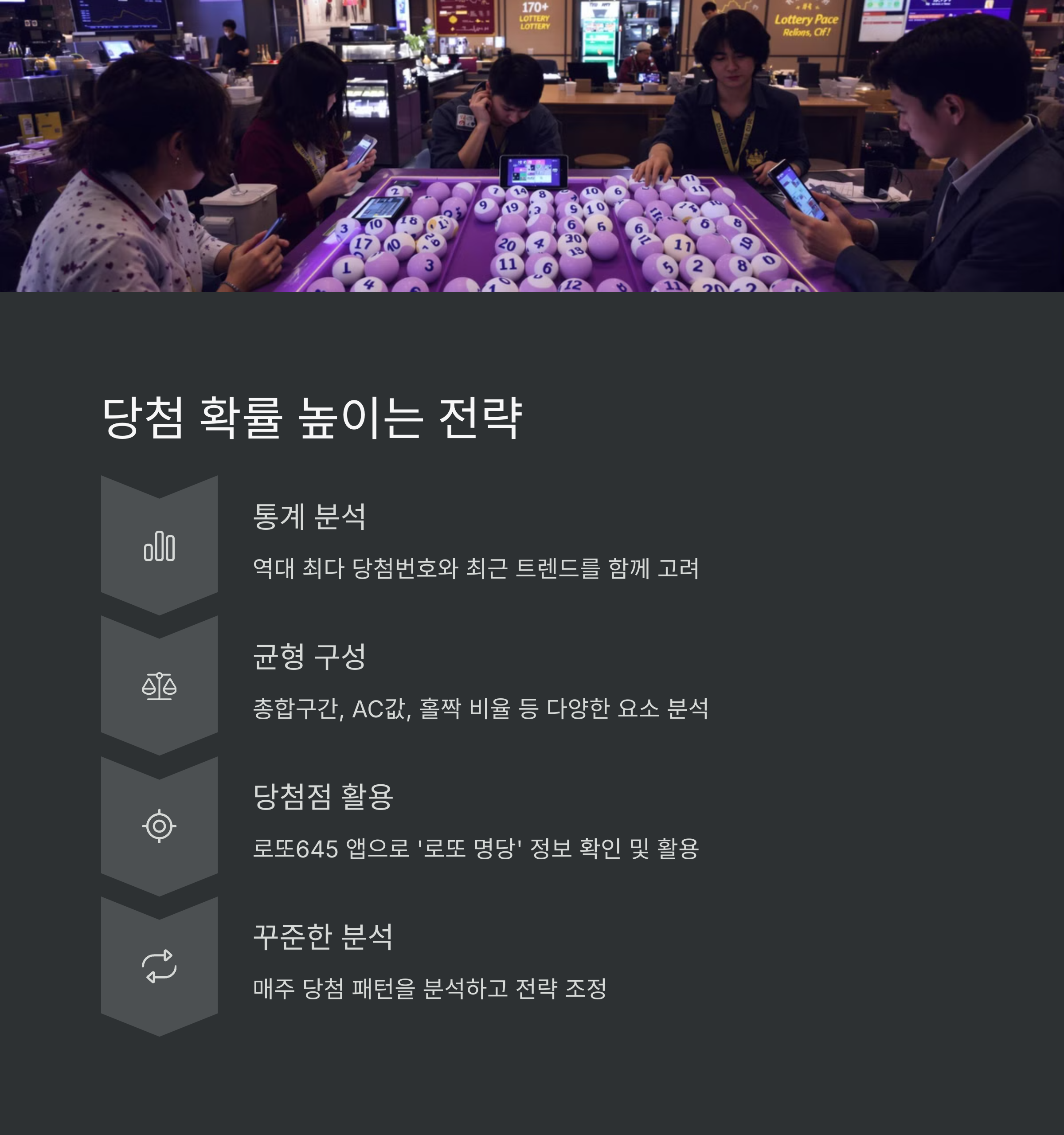 로또 당첨은 확률의 문제이지만, 통계 데이터를 활용한 전략적 접근은 당첨 가능성을 최적화하는 데 도움이 될 수 있습니다.