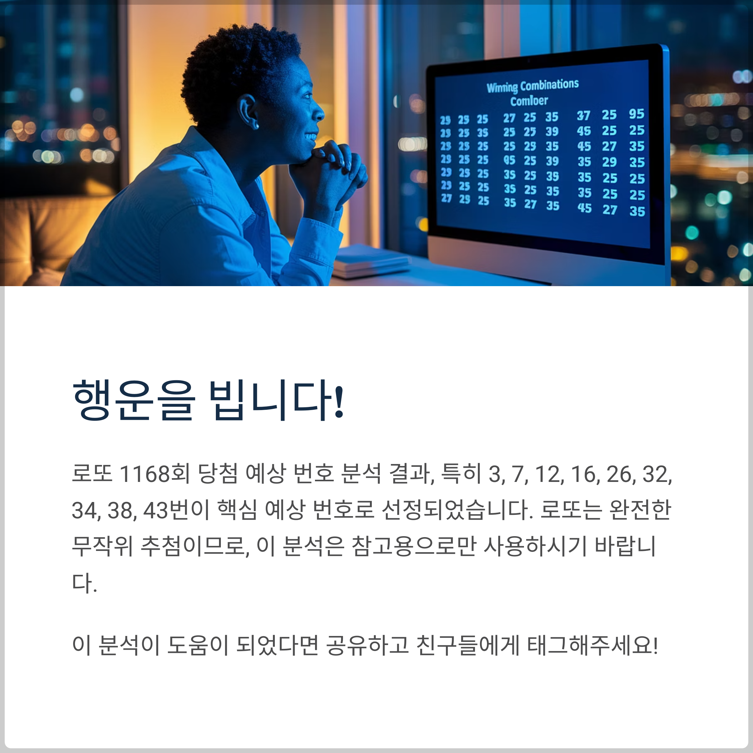 • 주요 예상 번호: 3, 7, 12, 16, 26, 32, 34, 38, 43
