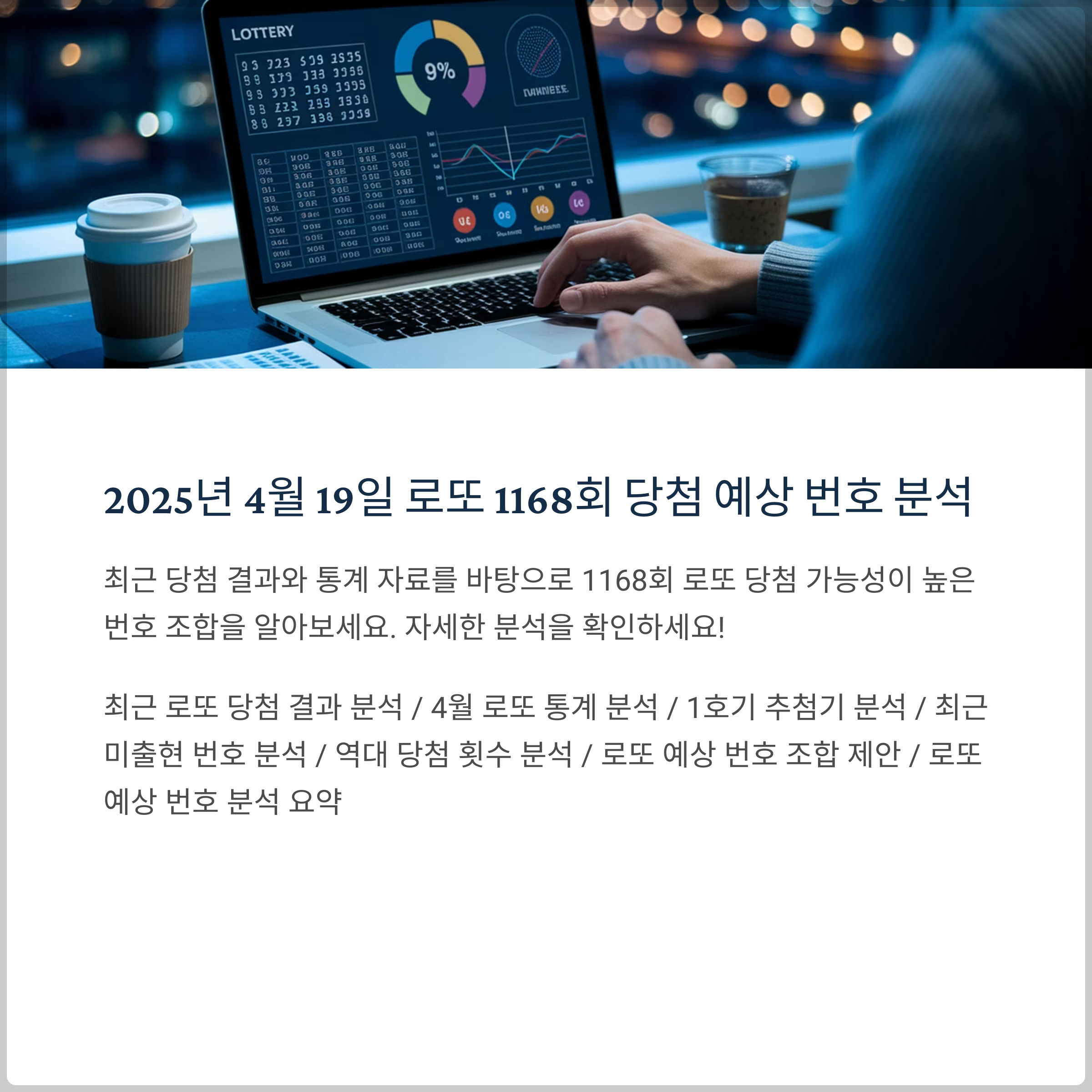 오늘은 2025년 4월 19일에 추첨될 로또 1168회 당첨 예상 번호를 분석해 드리겠습니다. 최근 1167회 로또 당첨 결과와 역대 당첨횟수 분석, 미출현 번호, 4월 1호기 추첨기 통계 자료 등을 바탕으로 당첨 가능성이 높은 번호 조합을 찾아보겠습니다.