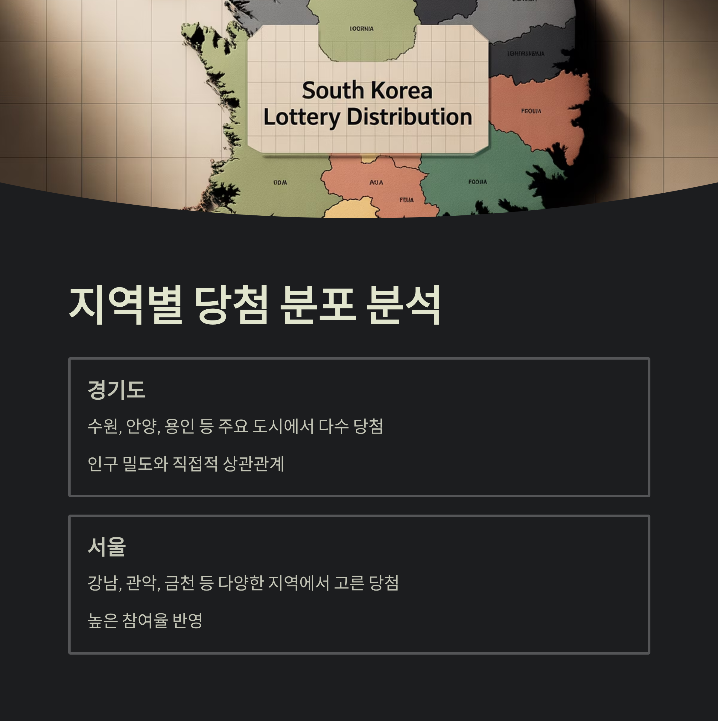 서울의 경우 강남, 관악, 금천 등 다양한 지역에서 고르게 당첨자가 배출되었습니다. 이는 서울 지역의 높은 참여율을 반영하는 결과로 볼 수 있습니다.