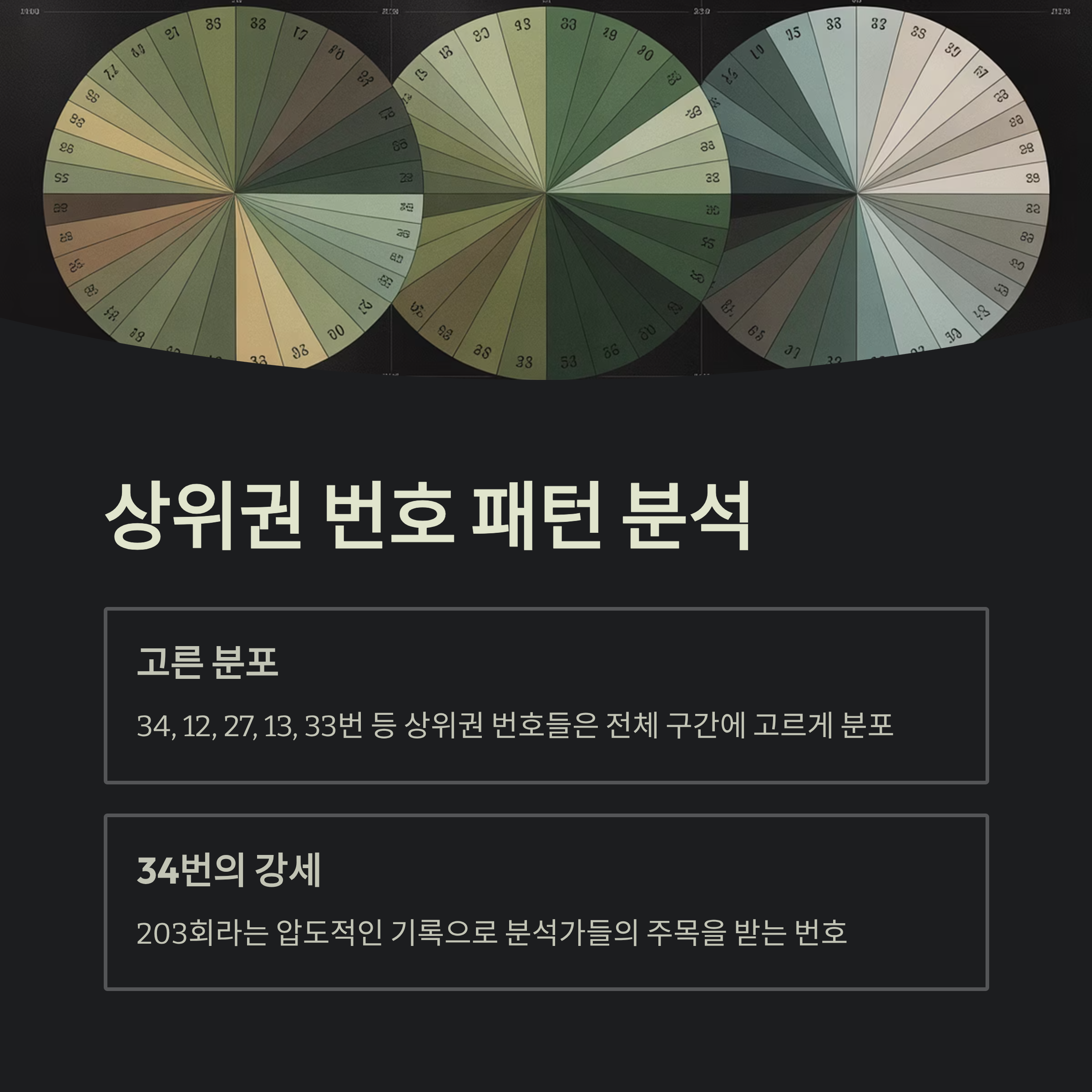 상위권 번호들의 패턴을 분석해보면 34, 12, 27, 13, 33번 등이 꾸준히 높은 당첨 횟수를 기록하고 있습니다.