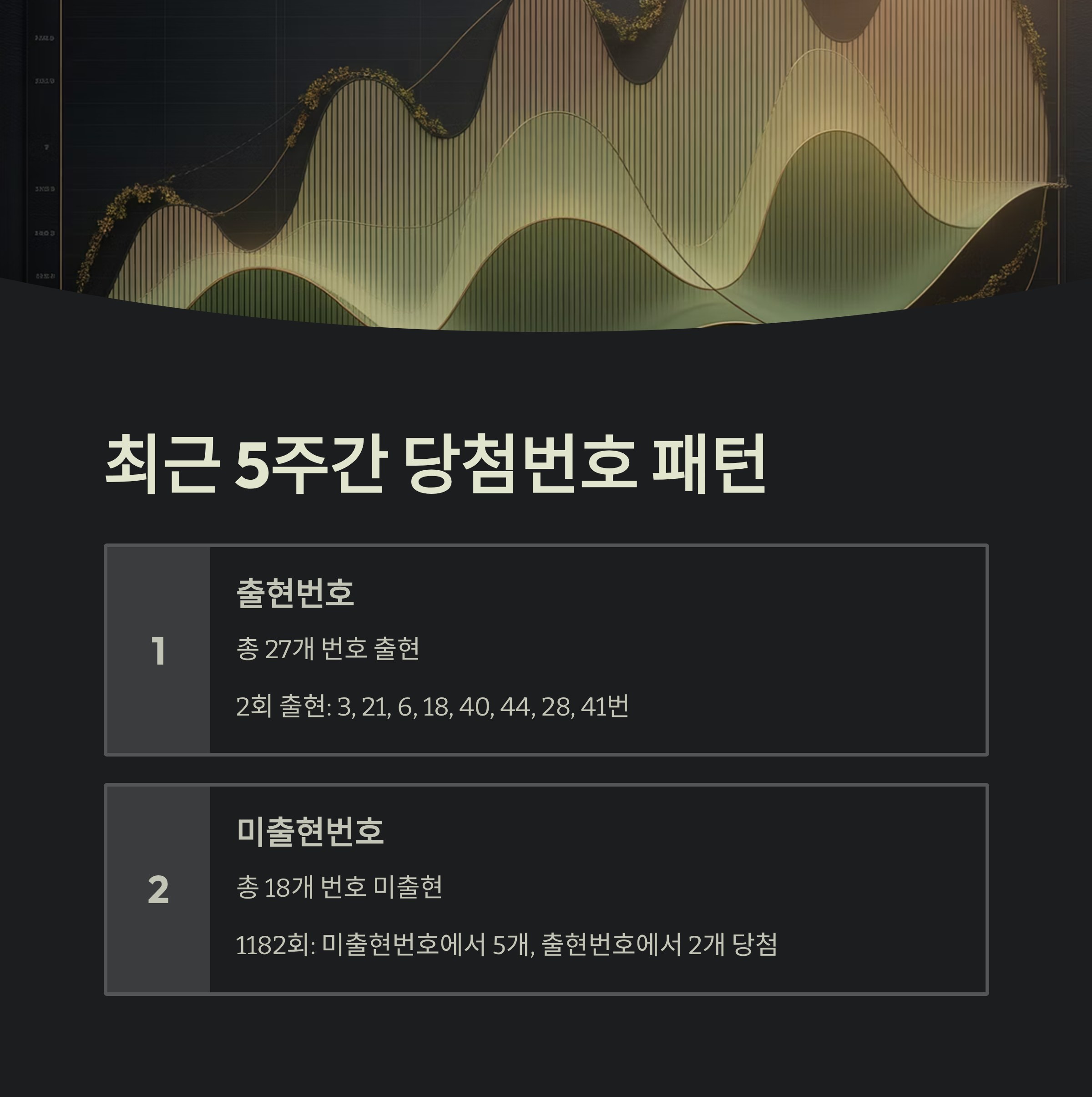 최근 5주간 통계를 살펴보면 출현번호와 미출현번호 간의 명확한 패턴이 나타납니다.