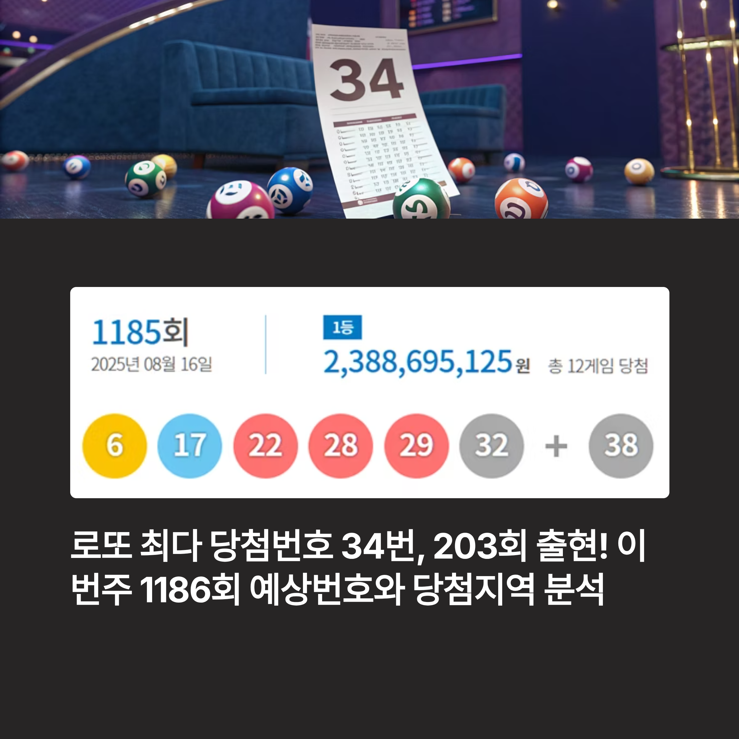 1. 역대 최다 당첨번호 중심 1186회 예상번호