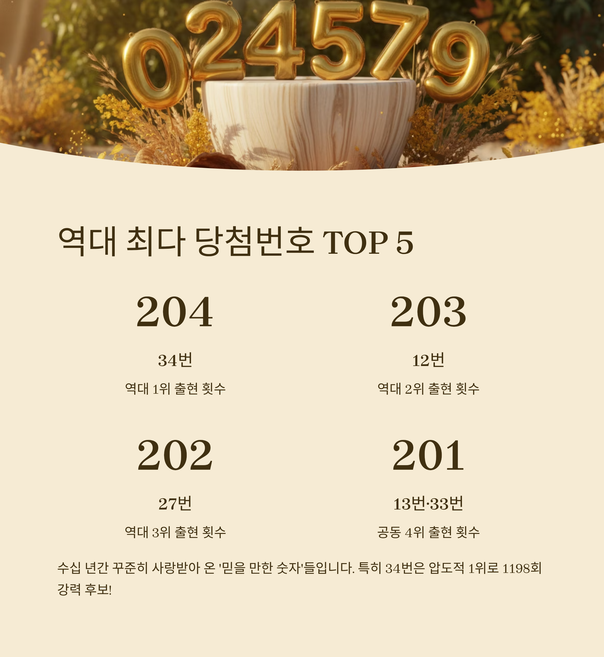 저는 매주 번호를 고를 때 역대 최다 + 계절 통계 + 최근 5주 흐름 이 3가지를 반드시 체크합니다.