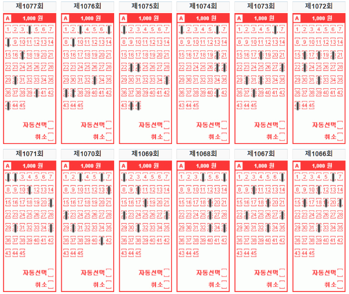 좌에서 우로 이동하면서 당첨번호들이 어느 위치에 나타나고 있는지 다음 로또번호를 확인할 수 있습니다.