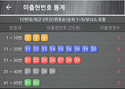 이런 경우 3주간 출현한 번호들을 더 분석해서 예상번호를 결정해야 합니다.