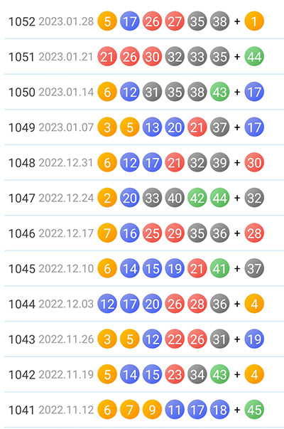 1041회 ~ 1052회차 12주간 당첨된 로또 1등 번호와 보너스 번호 내역입니다.