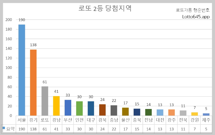 경기도에서는 138명, 인터넷 복권사이트에서 61명, 경남에서 41명, 부산에서 33명 등으로 2등에 당첨되었습니다.