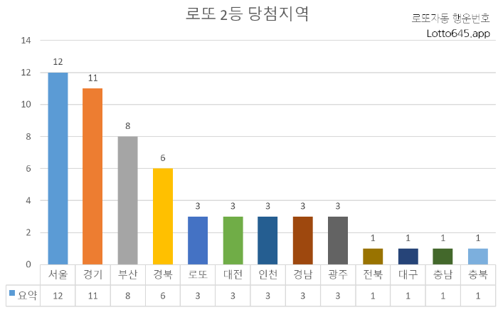 서울 지역에서 12명이 2등에 당첨되었고, 경기 지역은 11명, 부산에서 8명이 당첨되었습니다. 지역별 당첨결과를 보실까요?
